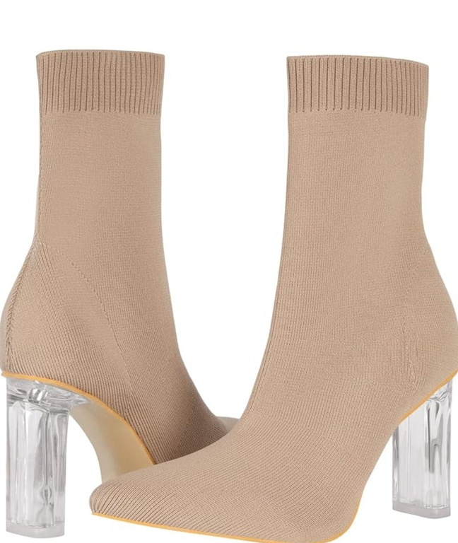 Shoe'N Tale Women's Knit Sock Ankle Boots Pointed Toe Clear Mid Heel Slip-on Stretch Booties Shoes