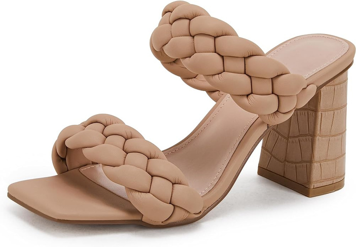 Syktkmx Women's Braided Heeled Sandals Backless Square Open Toe Block Slide Sandals