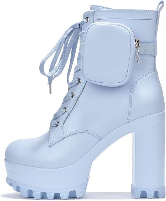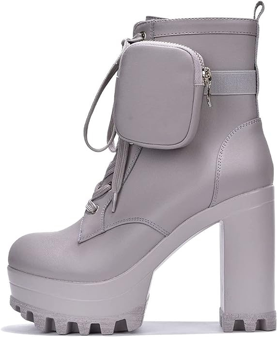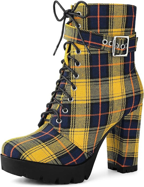 Perphy Platform Lace Up Chunky Heel Plaid Printed Ankle Combat Boots for Women